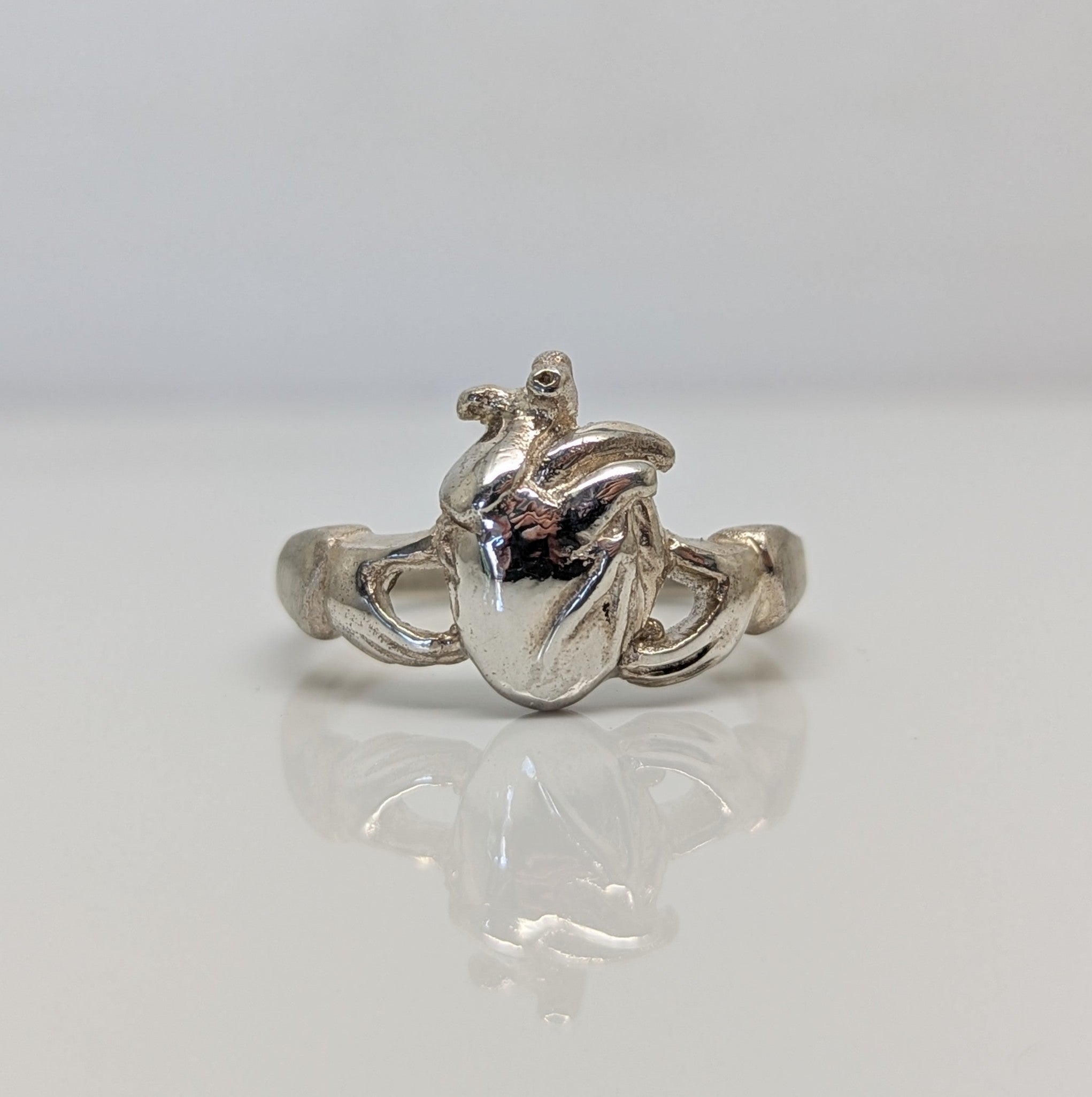 ANT HAT sterling silver anatomical heart claddagh ring is cast from a mould of an original hand carved piece and then finished by hand. Hand made in Melbourne.