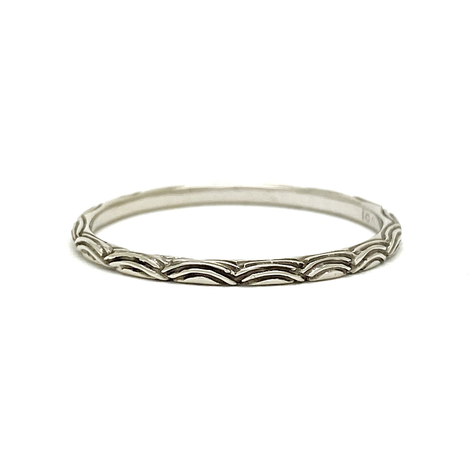 The Petite Wave band features an intricate wave pattern that wraps from one side of the ring to the other. A unique wedding band or stacking ring with a subtle vintage feel.