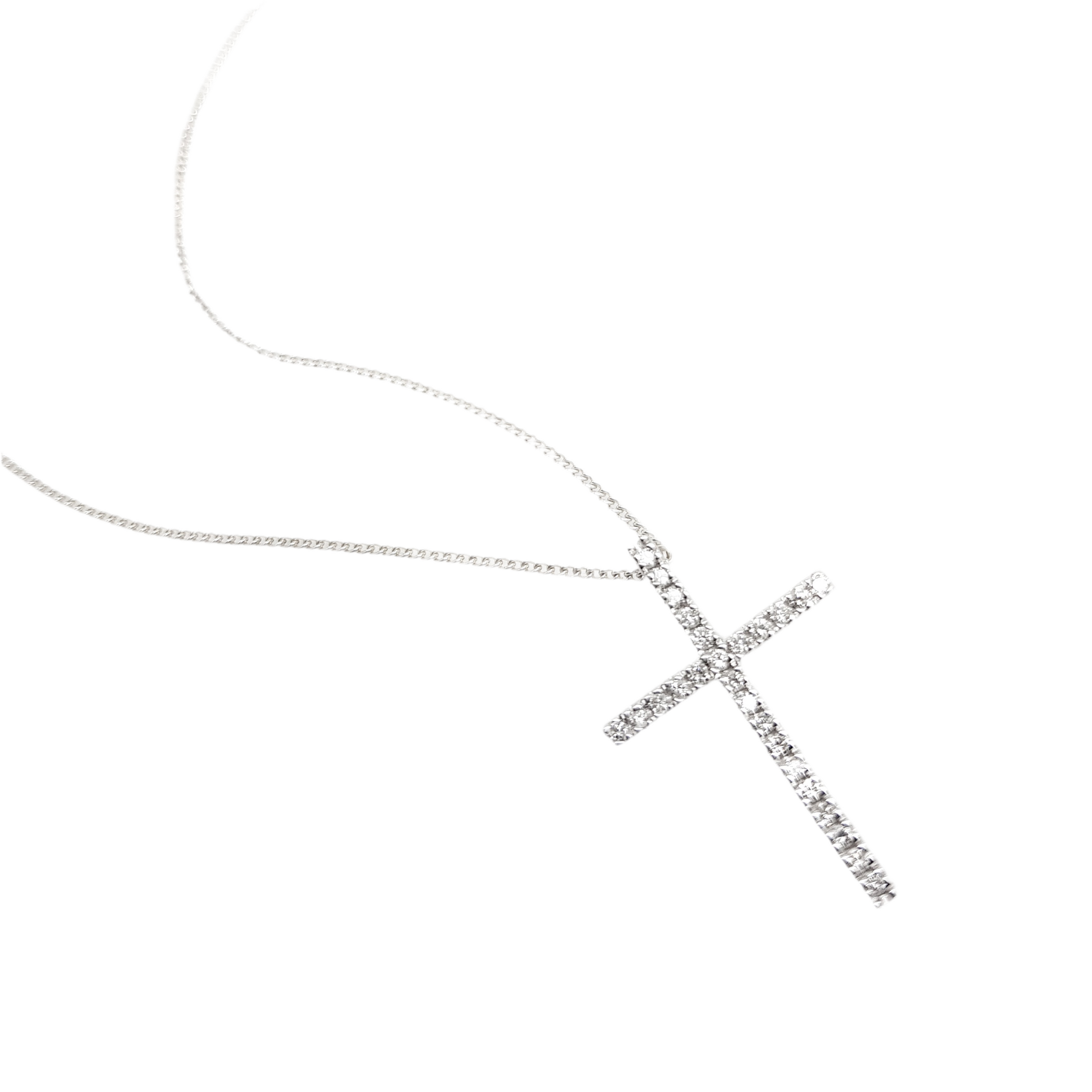 Sparkling bright white diamonds shine beautifully in this generous sized 9ct white gold cross pendant.