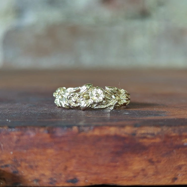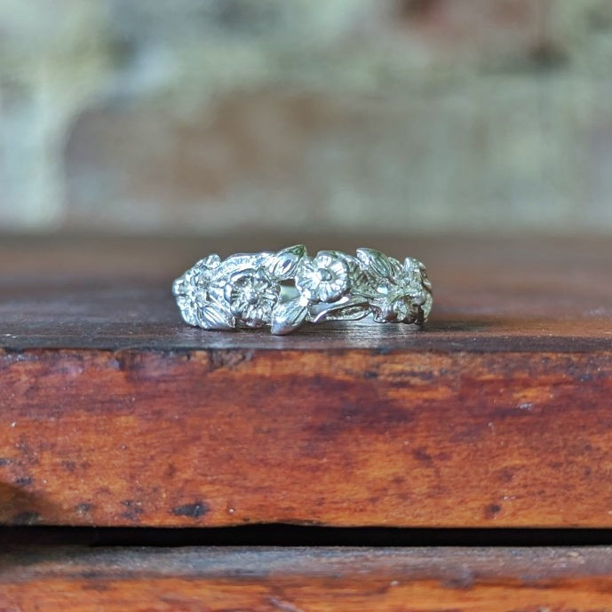 The floral bouquet ring features lovely fine detailed flowers, leaves and buds.